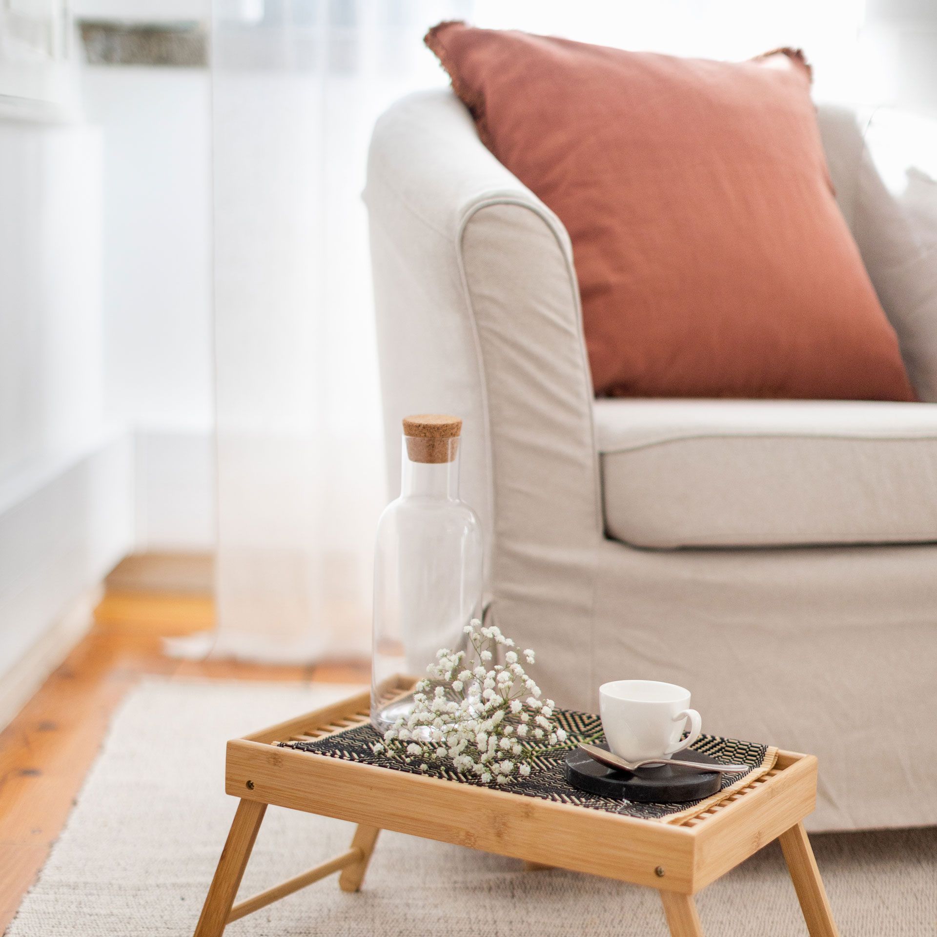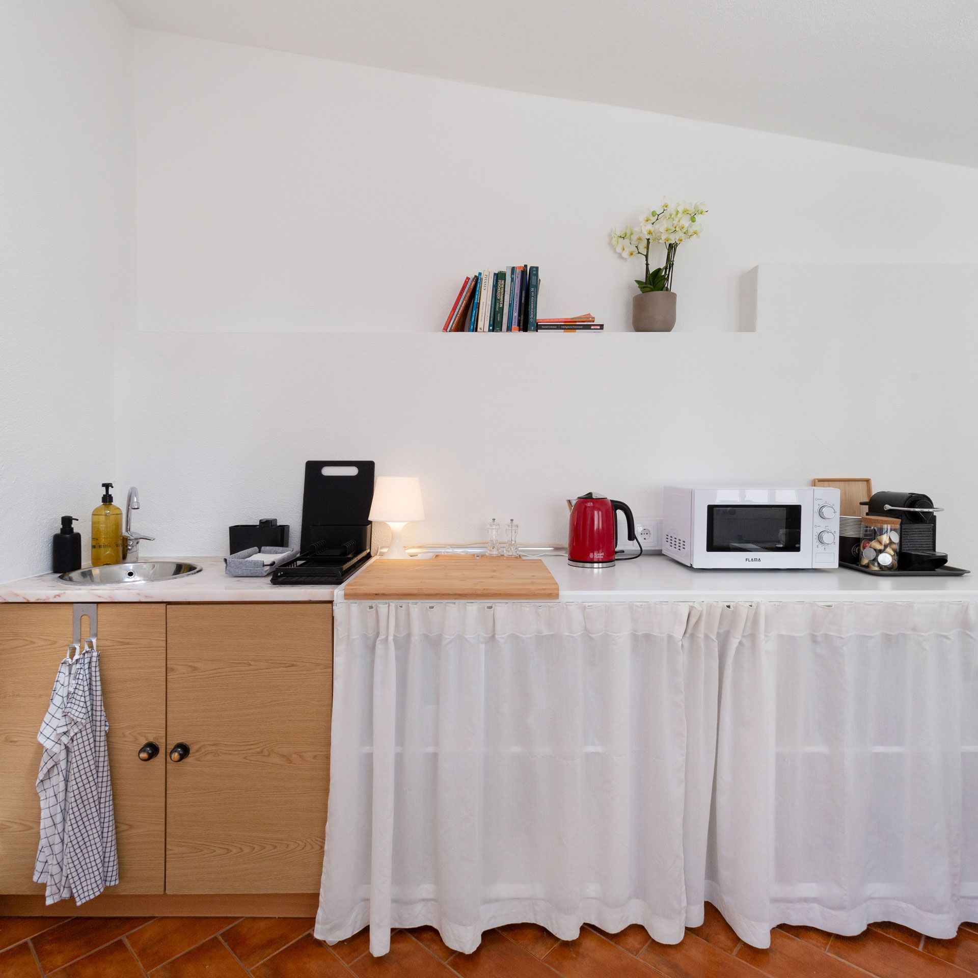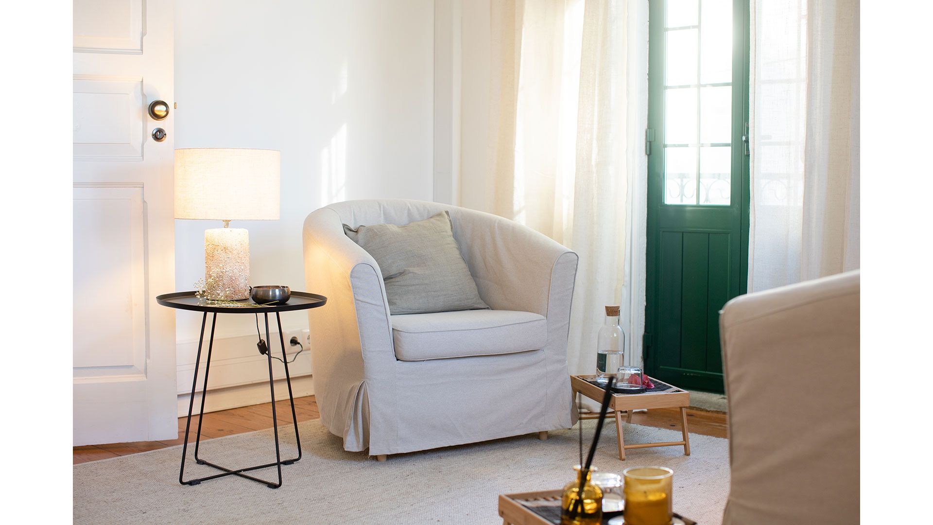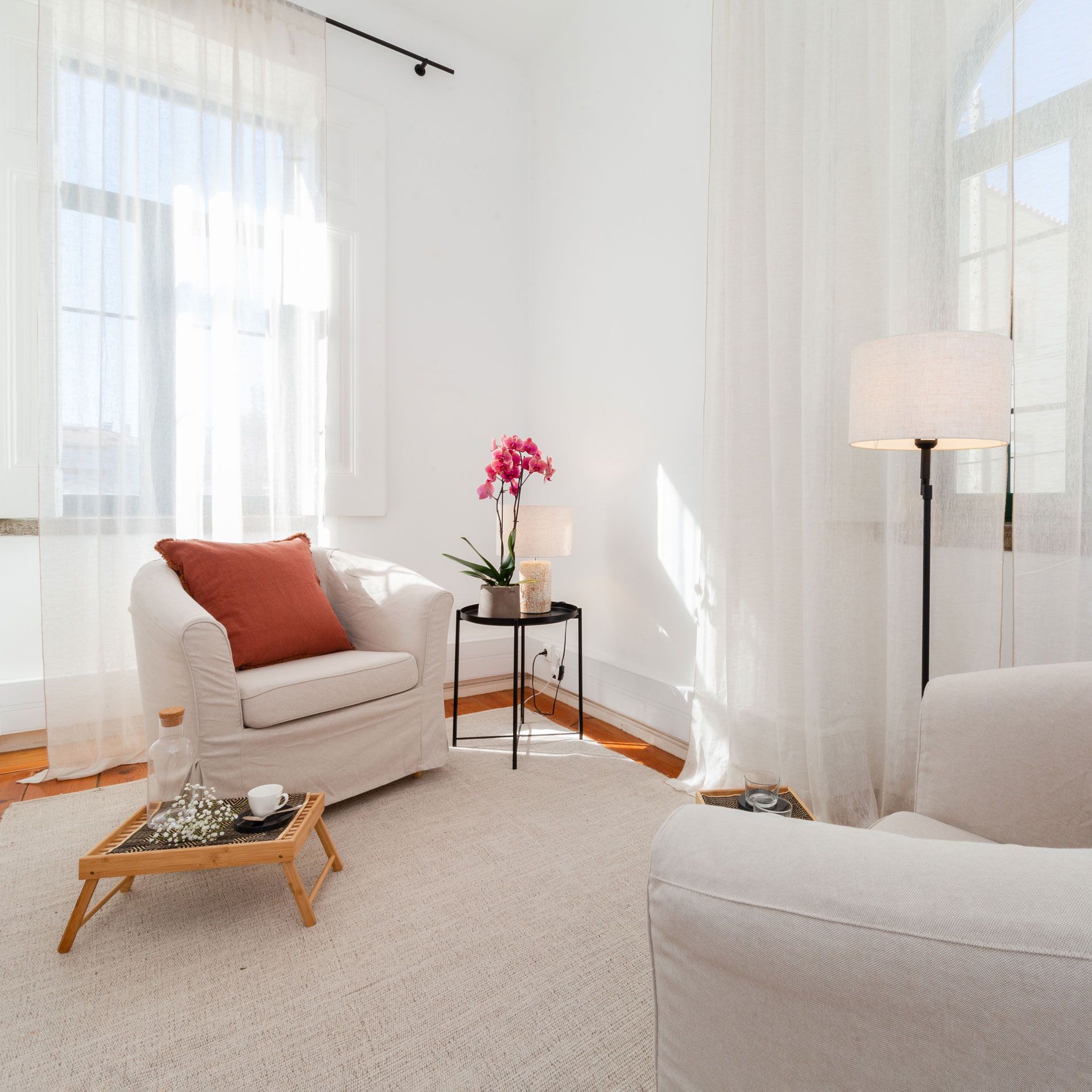 Todas as salas têm uma bonita luz natural e estão decoradas com uma atmosfera serena e confortável, definida por materiais naturais e um estilo minimalista.